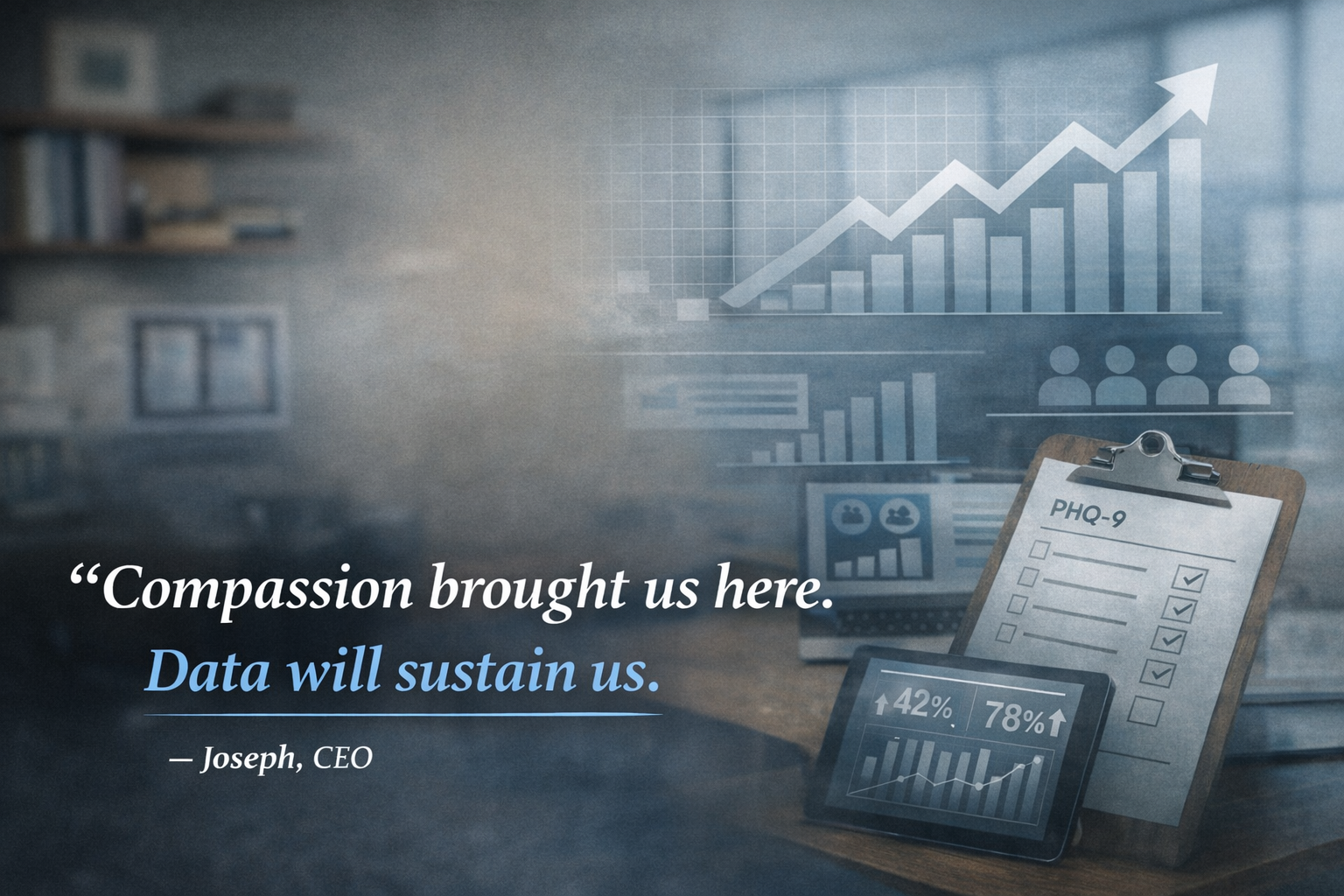 If a client’s anxiety scores plateau after four weeks, we adjust. If depressive symptoms spike, we intervene. If engagement drops, we ask why not just whether they showed up.